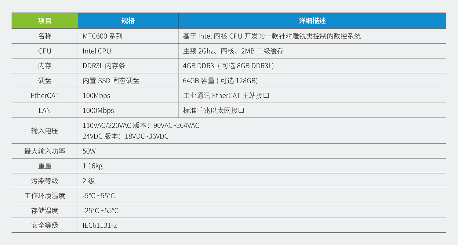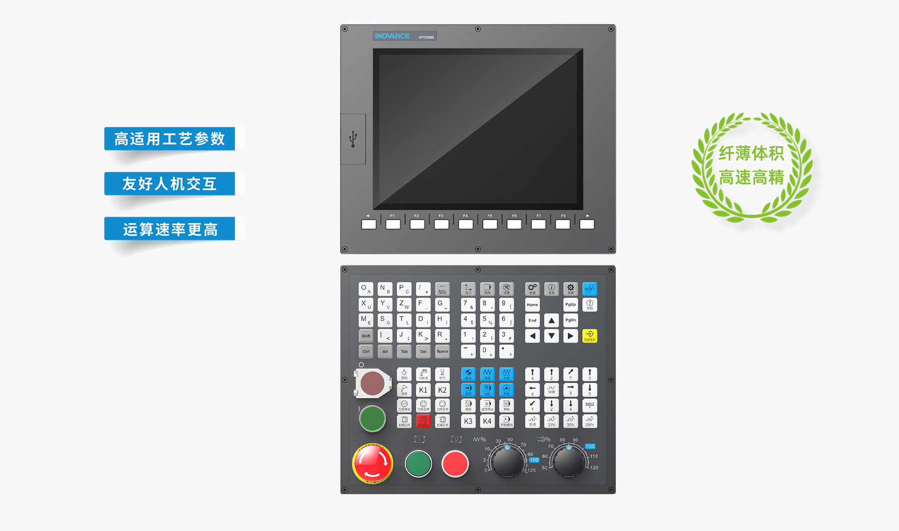 MTC600系列數控系統是基于成熟的德國PA數控系統平臺,為總線(xiàn)式數控裝置,扁平化的外觀(guān)設計,MCP面板分體式結構,具有纖薄的體積?;赬86硬件平臺,運算速率更高。兼容行業(yè)常用G代碼,支持鉆孔、攻牙等固定循環(huán)功能。協(xié)同匯川伺服開(kāi)發(fā)象限痕補償算法,智能曲率算法,保證加工的品質(zhì)更高速更高精。