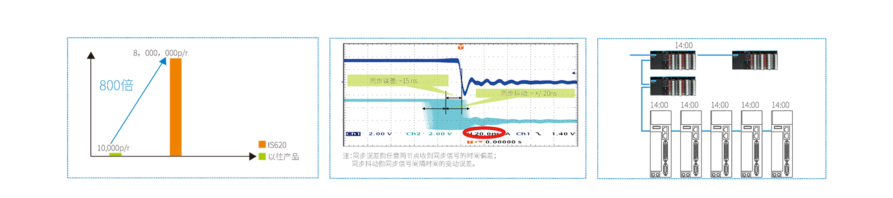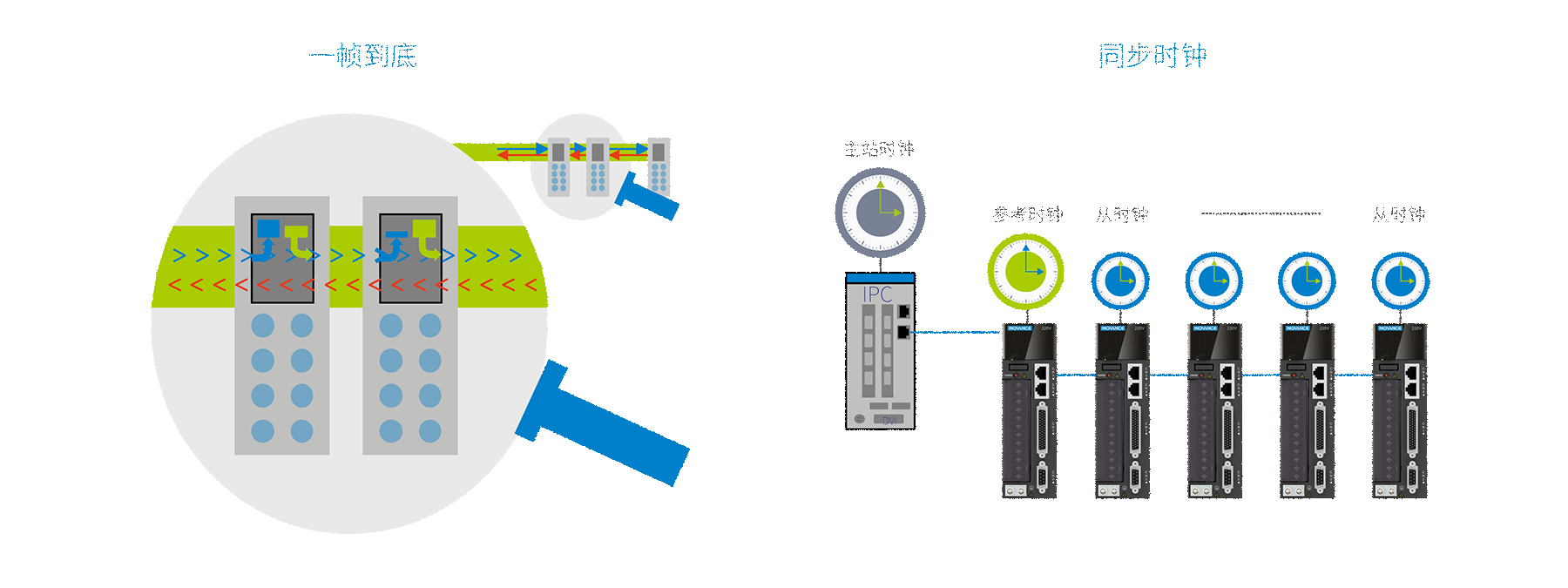 ?每個(gè)節點(diǎn)直接使用硬件實(shí)現運算,無(wú)需軟件參與,大幅縮短報文延時(shí)。一個(gè)伺服軸的延時(shí)只有1us。