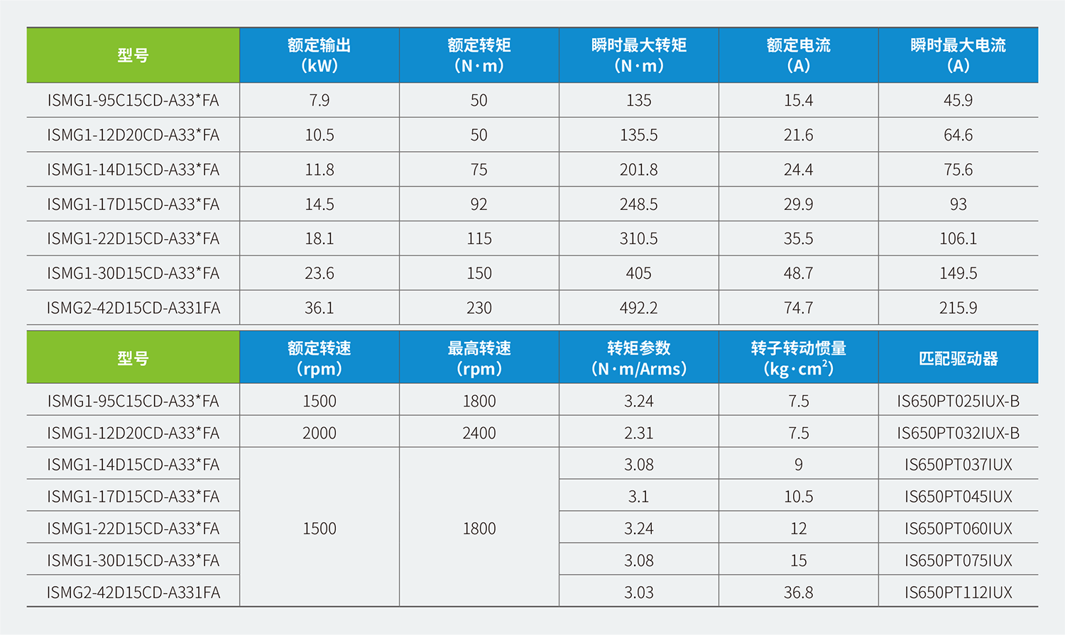 ISMG 系列伺服電機產(chǎn)品,功率覆蓋7.5 kW ~ 80 kW、標配23 位絕對值編碼器;產(chǎn)品的IP54 防護等級設計、耐沖擊振動(dòng)的編碼器結構設計保證了產(chǎn)品可以覆蓋絕大多數工業(yè)場(chǎng)合的應用;獨特的電磁設計及風(fēng)冷回路設計、內置熱保護器,實(shí)現了在產(chǎn)品在生命周期內永不退磁;ISMG1 系列亦可加裝150 N·m 制動(dòng)扭矩的制動(dòng)器。