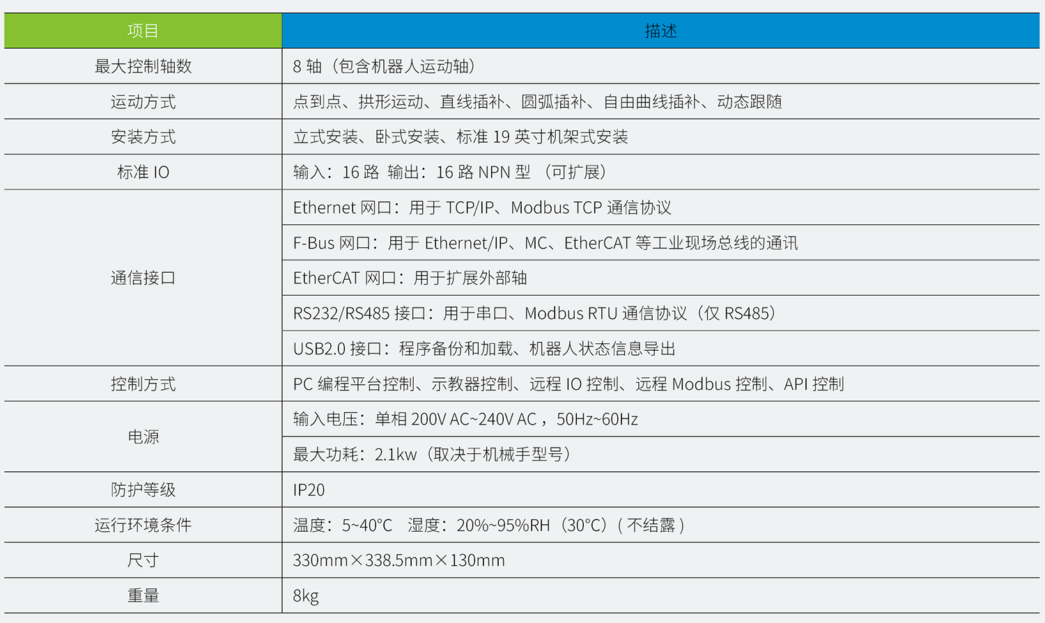 IRCB500 控制柜是一款驅控一體控制柜,配合SCARA 機器人和6 軸機器人使用,具備結構輕便、功能豐富、安裝簡(jiǎn)易、擴展方便等特點(diǎn)。這款控制柜適用的機器人機型包含正裝IRS111 系列3Kg、6Kg、10Kg、20Kg 負載的SCARA 機型;IRS112 系列的倒裝3Kg、4Kg 負載的SCARA 機型;鎖螺絲專(zhuān)機以及IRS311 系列3Kg、7Kg 負載的6 軸機器人。廣泛應用于手機、TP、鋰電、光伏、塑機(含玩具)、精品包裝(天地蓋)等行業(yè)。